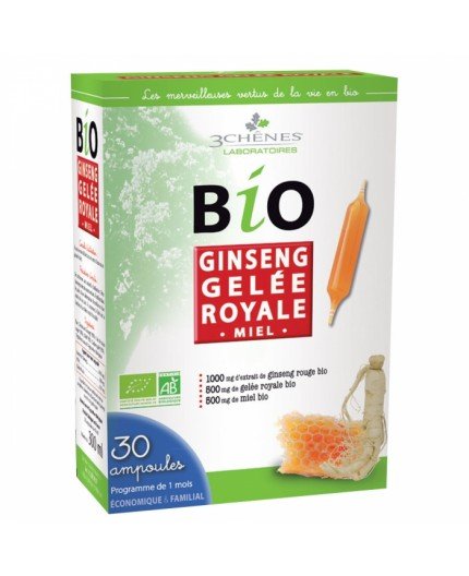 Apport pour 1 ampoule: Extrait de Gingseng…..1000mg Miel…..500mg Gelée royale…..500mg